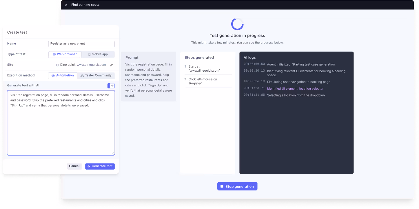 by drafting tests for you, self‑healing your tests when your UI changes, and giving you visibility into exactly what changed. No black boxes.